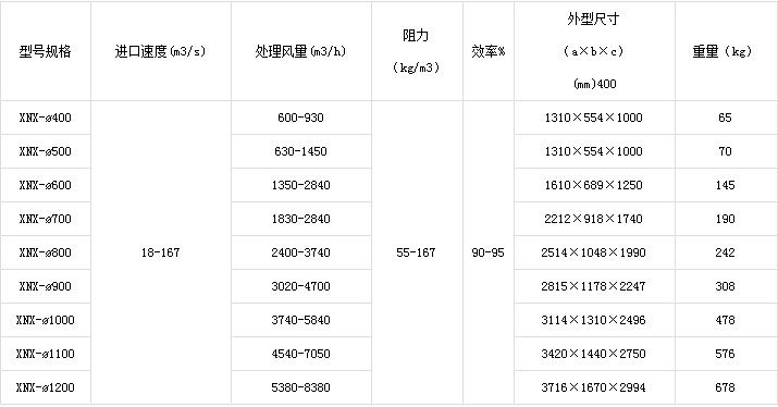 XNX型旋風(fēng)除塵器為牛角彎體椎斜底型除塵器,入口含塵濃度應(yīng)低于50克/m3,入口速度不小于18米/秒,粉塵微粒不大于1毫米,適用于一般工業(yè)通風(fēng)除塵系統(tǒng),工業(yè)尾氣中處重物料回收,如冶金、電力、機(jī)械加工、石油化工、建材等部門,再加適當(dāng)內(nèi)稱后,可用于磨損較大或有腐蝕性的場合,但不能用粘性粉塵。